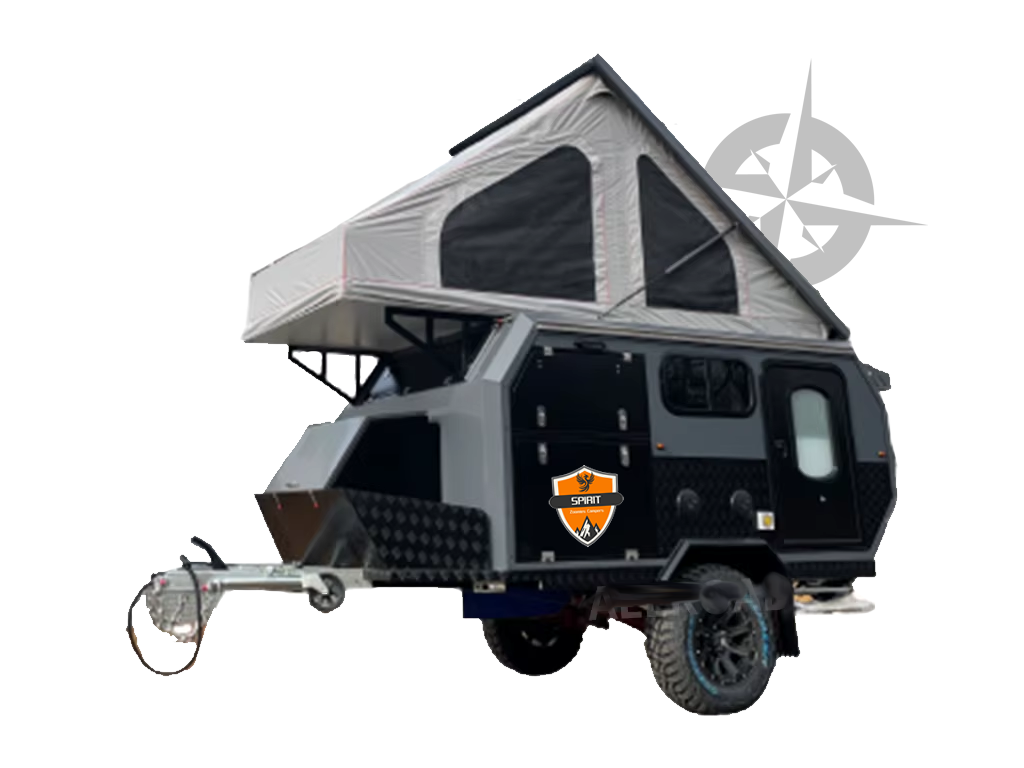 Our off-road hybrid scissor-roof camper is fully equipped for a unique outdoor living experience. The built-in deluxe double bed, equipped with high-quality mattresses and a warm tent, allows you to enjoy a five-star sleep in the embrace of nature.